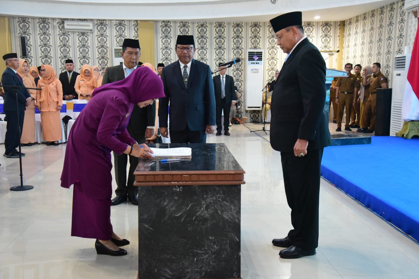 Dalam sambutannya, Gusnar menjelaskan, pengisian jabatan dilakukan melalui mekanisme manajemen talenta yang menitikberatkan pada kompetensi dan kapasitas pejabat. Seluruh pejabat yang dilantik telah melalui proses asesmen untuk memastikan kesesuaiantt ttp jabatan.