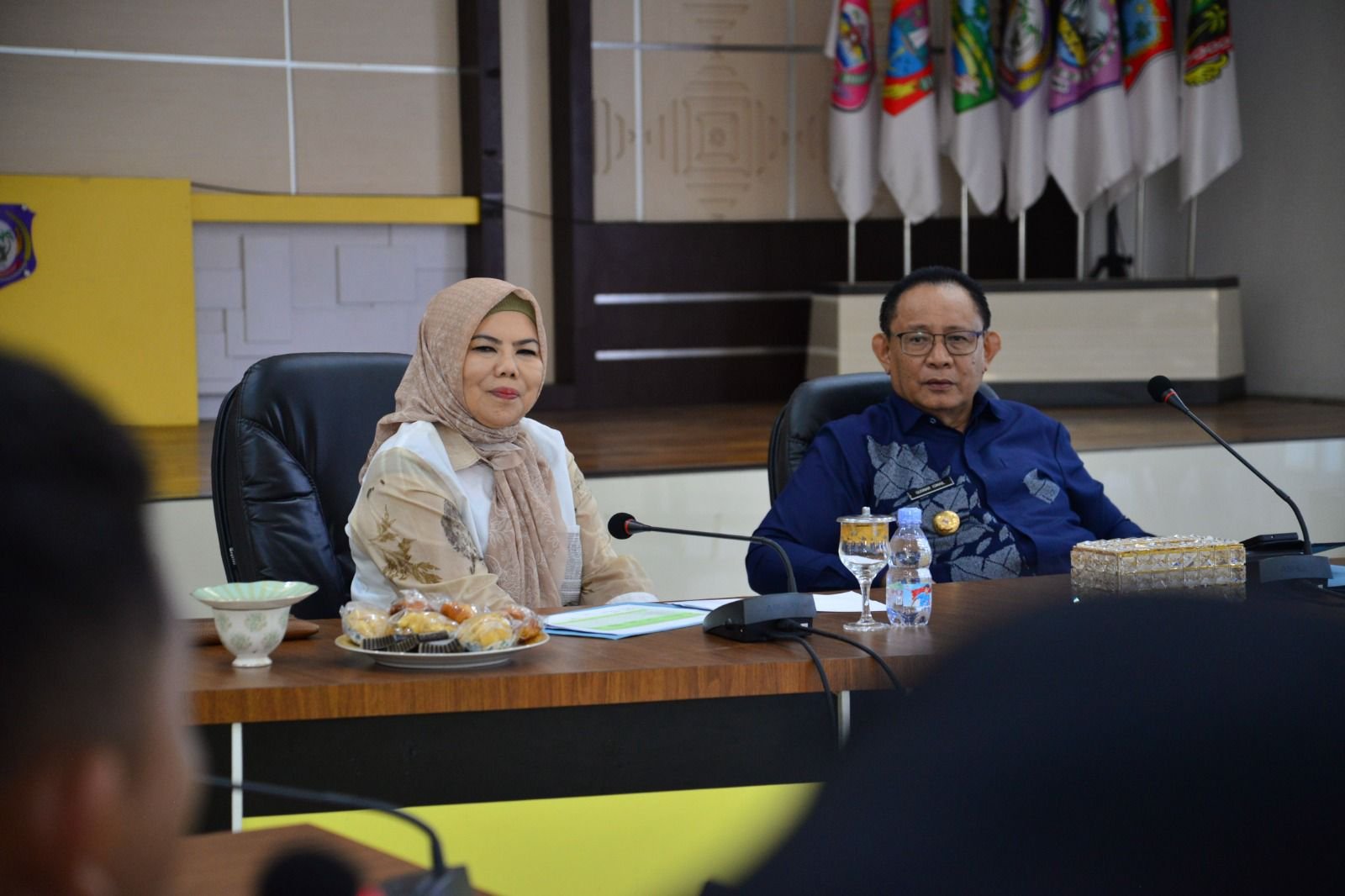 Wakil Gubernur Gorontalo Idah Syahidah Rusli Habibie mendampingi Gubernur Gusnar Ismail memimpin Rapat Evaluasi pelaksanaan program Makan Bergizi Gratis di Aula Rujab Gubernur, Kamis, (6/11/2025). Foto – Mila Diskominfotik.