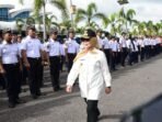 Wakil Gubernur Gorontalo Idah Syahidah Rusli Habibie saat mengecek pasukan apel pada pelaksanaan gelar pasukan sekaligus membuka Posko Terpadu Angkutan Udara Natal