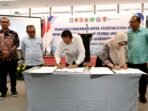 Gubernur Gorontalo Gusnar Ismail bersama Deputi Direksi Wilayah X BPJS Kesehatan, Sofiani, menandatangani MoU program JKN di Hotel Aston, Jakarta Pusat, Kamis