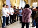 Sekdaprov Gorontalo Sopian Ibrahim didampingi oleh Kepala BKD dan Tim Komunikasi Gubernur memberikan keterangan pers terkait penonaktifan Kepala Dinas Pemuda dan Olahraga