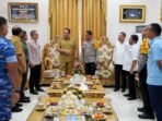 Gubernur Gorontalo Gusnar Ismail berbincang dengan unsur Forkopimda usai rapat yang membahas persiapan pelaksanaan GHM 2025 di rumah jabatan gubernur, Selasa (25/11/2025).