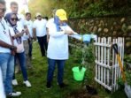 Wakil Gubernur Gorontalo Idah Syahidah Rusli Habibie saat ikut menanam pohon dan menyiraminya pada saat Pencanangan HUT ke-25 Provinsi Gorontalo, Selasa (11/11/2025),