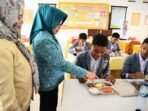 Ketua TP PKK Provinsi Gorontalo Nani Ismail Mokodongan memantau pelaksanaan program MBG di SMAN 1 Limboto Barat, Kabupaten Gorontalo, Rabu (29/10/2025). (Foto