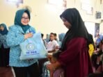 Wagub Idah Syahidah Rusli Habibie saat turut membagikan makanan kepada para panitia dan relawan yang sejak awal berpartisipasi pada pelaksanaan persiapan Perkemahan