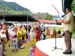 Gubernur Gorontalo Gusnar Ismail memberikan sambutan pada pasar murah bersubsidi di Desa Bilato, Kecamatan Bilato, Kabupaten Gorontalo, Kamis (23/10/2025). (Foto : Haris)
