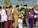 Prosesi penyambutan adat Mopotilolo Dubes Australia untuk Indonesia Mr. Rod Brazier di terminal lama Bandara Djalaludin, Kabupaten Gorontalo, Selasa (21/10/2025). (Foto :