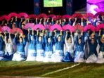 Pertunjukan tarian kolosal oleh 70 penari pada pembukaan kegiatan Ekspresi Budaya Bajau dalam Bingkai NKRI di Alun-Alun Kecamatan Tilamuta, Kabupaten Boalemo, Rabu