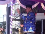 Gubernur Gorontalo Gusnar Ismail memberikan arahan pada apel Korpri yang dirangkaikan dengan pelantikan PPPK Paruh Waktu di halaman Museum Purbakala, Jumat (17/10/2025).