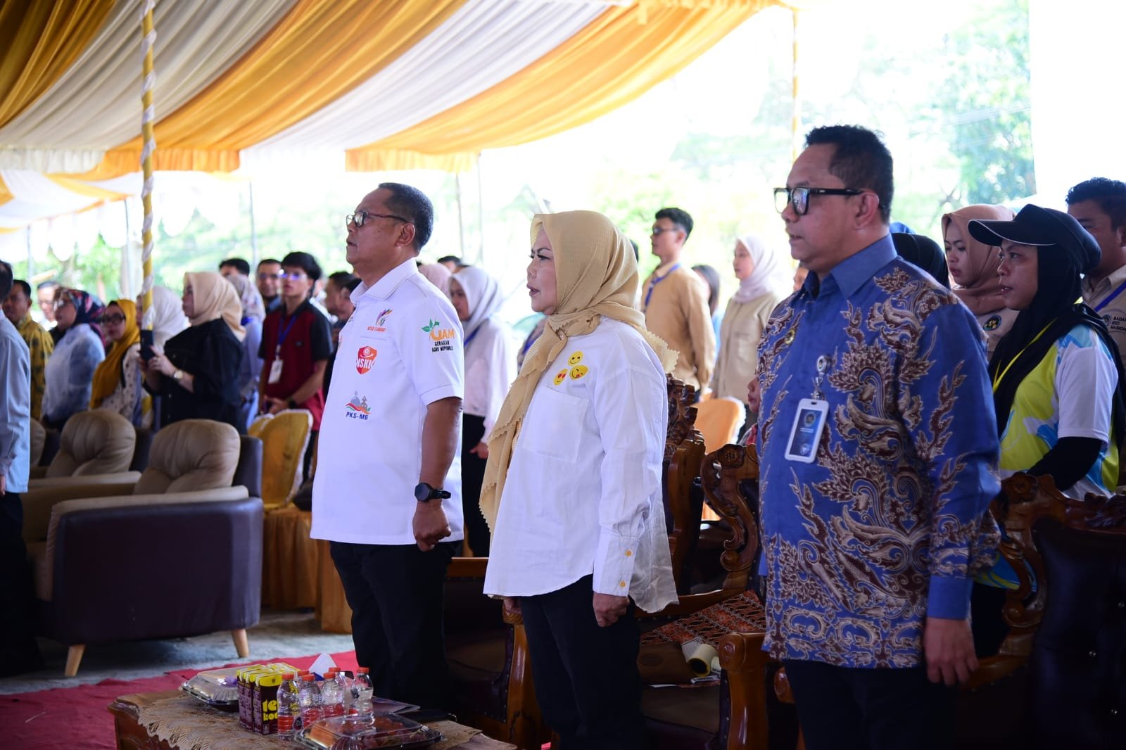 Plt Deputi Promosi dan Kerja Sama BGN Pusat, Gunalan, Wakil Gubernur Idah Syahidah Rusli Habibie, Bupati Gorontalo Utara Thariq Modanggu, saat menghadiri Dialog Interaktif Sinergi Ekonomi Kerakyatan dalam Mendukung Program MBG di Gorontalo, yang berlangsung di Ruang Terbuka Hijau, Kabupaten Gorontalo Utara, Sabtu (25/4/2026). Foto – Nova Diskominfotik