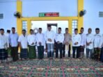 Foto bersama dengan Gubernur Gorontalo Gusnar Ismail usai salat Jumat berjemaah di Masjid Besar Al-Misbhah, Kecamatan Tilongkabila, Kabupaten Bone Bolango, Jumat (7/11/2025).