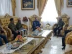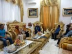 Gubernur Gorontalo Gusnar Ismail menerima tim pembangunan Monumen Titik Awal Islam Masjid Hunto Sultan Amai di rumah jabatan gubernur, Kamis (6/11/2025). (Foto