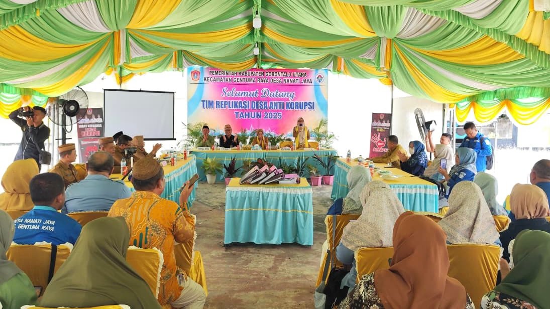 Kab. Gorontalo Utara, Kominfotik – Desa Nanati Jaya, Kecamatan Gentuma Raya, Kabupaten Gorontalo Utara, menjadi salah satu dari tiga desa yang dinilai sebagai percontohan desa antikorupsi di Provinsi Gorontalo. Program kerja sama Komisi Pemberantasan Korupsi (KPK) dengan pemerintahan daerah ini dinilai oleh Tim Replikasi Desa Antikorupsi, Selasa (7/10/2025).