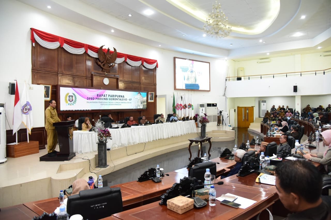 Kota Gorontalo, Kominfotik – Dewan Perwakilan Rakyat Daerah Provinsi Gorontalo menyetujui Rancangan Peraturan Daerah (Ranperda) Penyelenggaraan Kepemudaan untuk ditetapkan menjadi Perda pada Rapat Paripurna DPRD ke-67, Senin (29/12/2025). Rapat ini turut dihadiri Gubernur Gorontalo Gusnar Ismail dan Wagub Idah Syahidah Rusli Habibie.