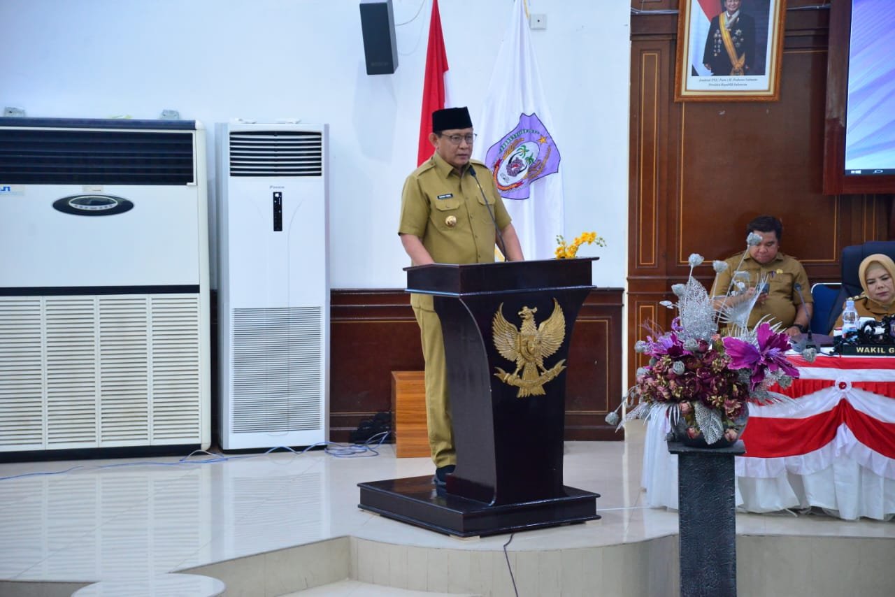 Gubernur Gorontalo Gusnar Ismail saat memberikan sambutan pada Rapat Paripurna ke 55 Senin (20/10/2025). Foto – Ryan Diskominfotik.