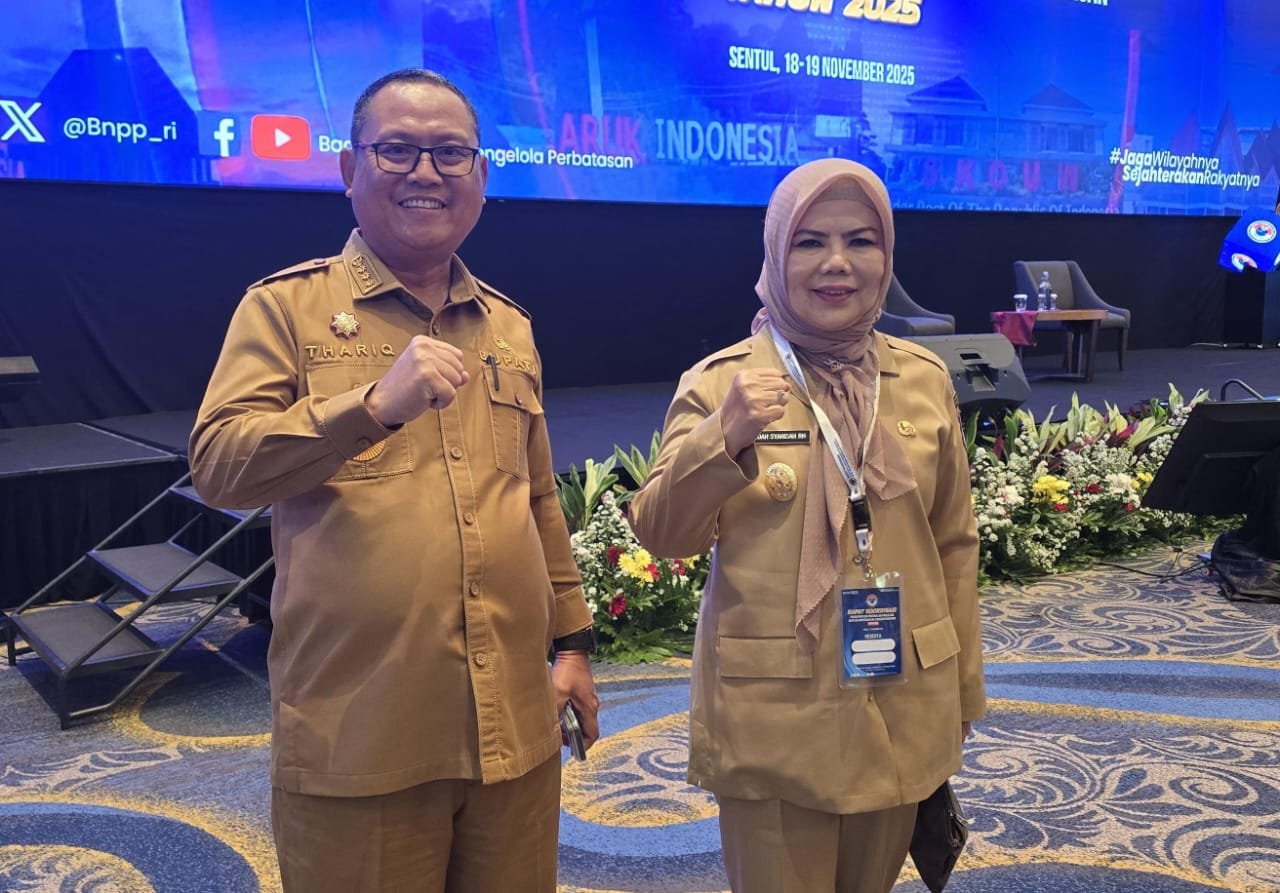 Wakil Gubernur Gorontalo Idah Syahidah Rusli Habibie didampingi Bupati Gorontalo Utara Thariq Modanggu yang hadir pada Pengelolaan Batas Wilayah Negara dan Kawasan Perbatasan Tahun 2025, Selasa (18/11/2025). Gorontalo Utara sendiri menjadi lokasi perbatasan yang tertuang pada SK.