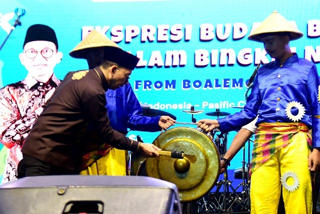 KABUPATEN BOALEMO, Kominfotik – Puncak perayaan Hari Ulang Tahun (HUT) ke-26 Kabupaten Boalemo berlangsung meriah dengan gelaran Ekspresi Budaya Bajau dalam Bingkai NKRI di Alun-Alun Kecamatan Tilamuta, Rabu (15/10/2025) malam. Kegiatan yang diselenggarakan oleh Balai Pelestarian Kebudayaan Wilayah XVII bekerja sama dengan Pemerintah Kabupaten Boalemo, dihadiri oleh Menteri Kebudayaan Fadli Zon yang turut didampingi oleh Sekretaris Daerah Provinsi Gorontalo Sofian Ibrahim.