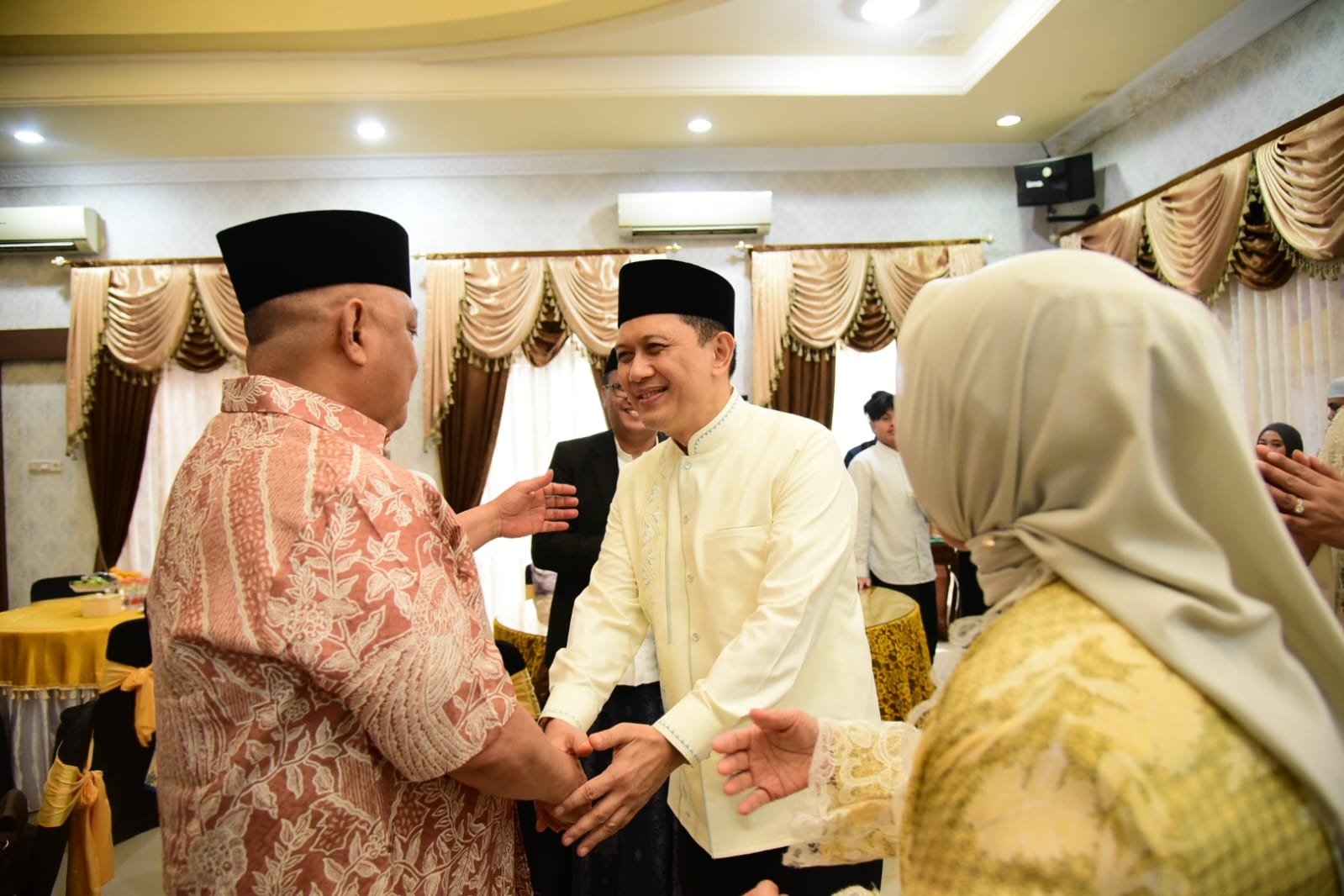 “Hari pertama ini cukup banyak tamu yang hadir, termasuk tamu dari rumah jabatan gubernur yang kemudian bersilaturahmi juga di sini,” jelasnya.