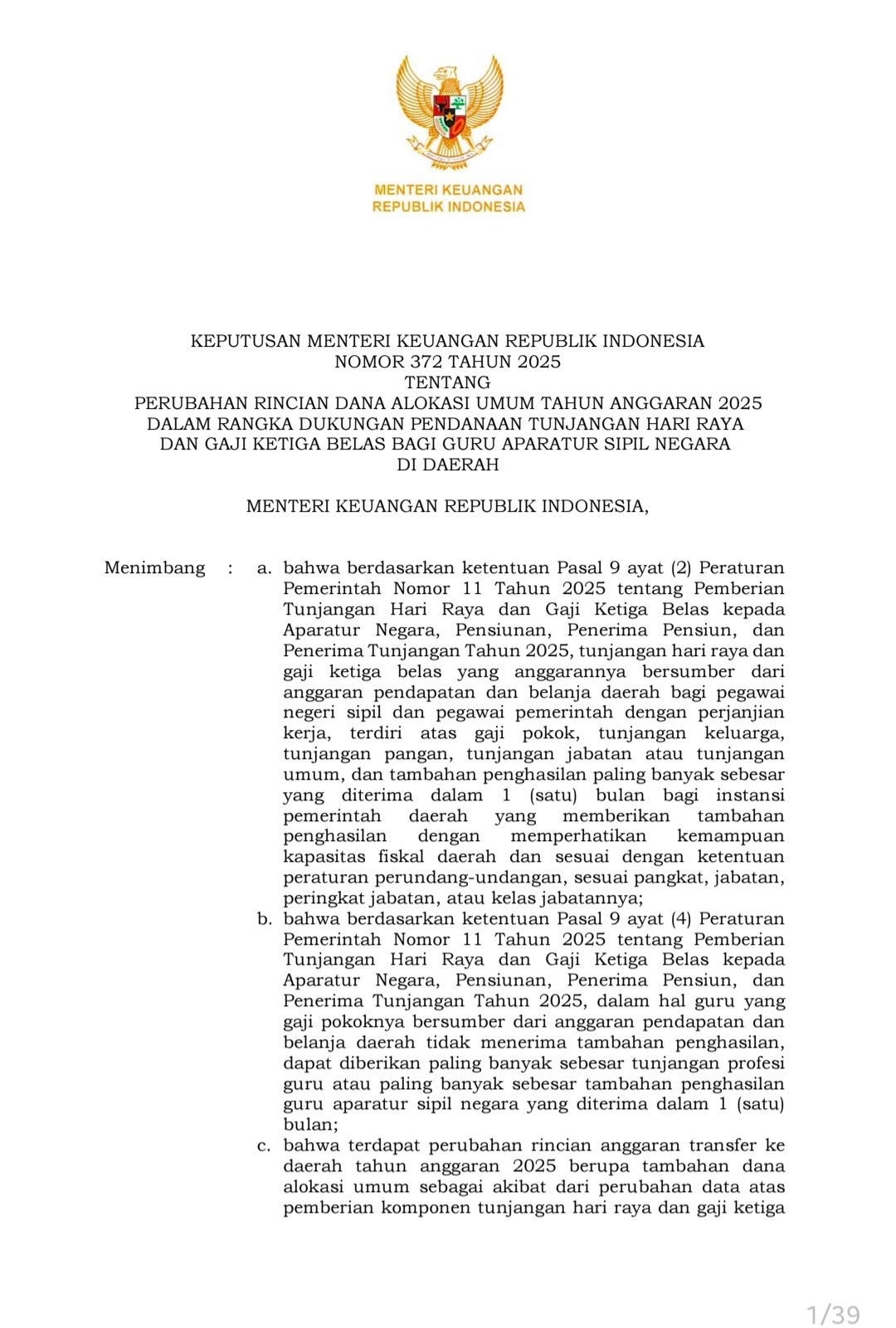 Kota Gorontalo, Kominfotik – Pembayaran sertifikasi ke 13 dan Tunjangan Hari Raya (THR) bagi guru belum bisa dibayarkan. Hal tersebut disebabkan oleh Keputusan Menteri Keuangan (KMK) Nomor 372 Tahun 2025 tentang Perubahan Rincian Dana Alokasi Umum (DAU) baru terbit 22 Desember kemarin. Pemerintah provinsi perlu menunggu anggaran masuk ke kas daerah di tengah waktu akhir tahun yang mepet.