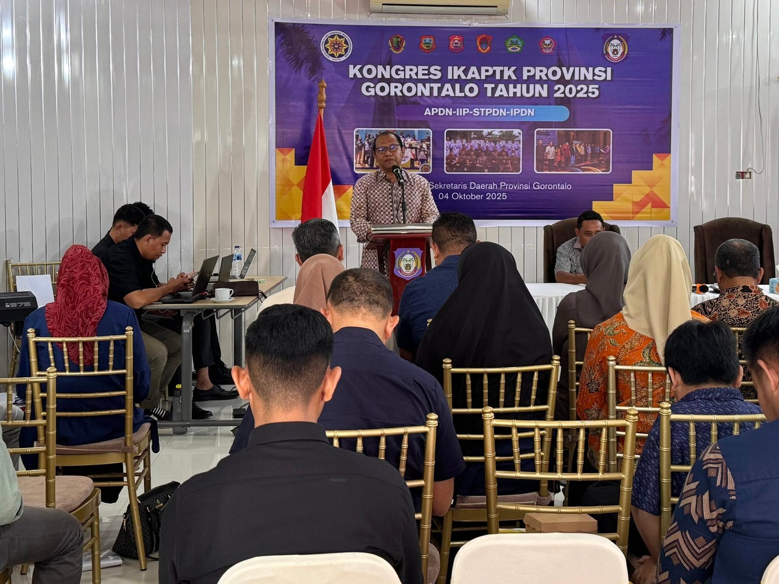 Kota Gorontalo, Kominfotik — Kongres ke-3 Ikatan Keluarga Alumni Pendidikan Tinggi Kepamongprajaan (IKAPTK) Provinsi Gorontalo Tahun 2025 menjadi ajang penting untuk mempererat silaturahmi dan memperkuat konsolidasi organisasi. Kegiatan ini berlangsung di Aula Rudis Sekretaris Daerah, Sabtu (4/10/2025), dan dibuka langsung oleh Sekdaprov Sofian Ibrahim.