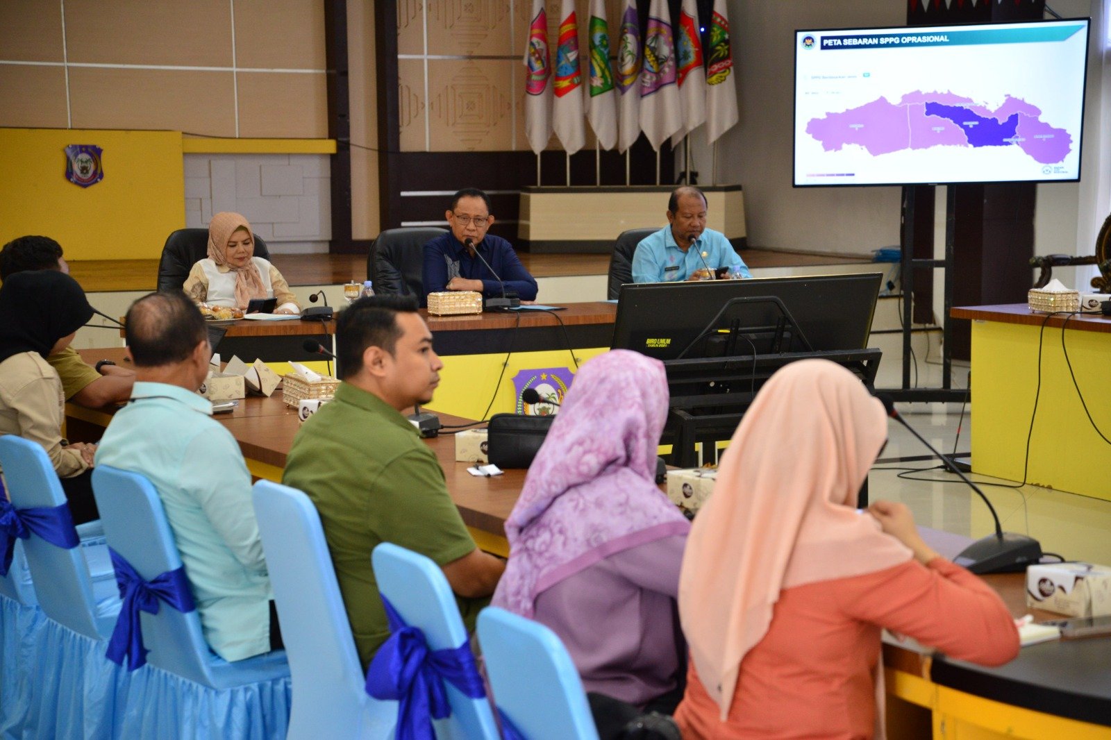 Rapat evaluasi Makan Bergizi Gratis (MBG) di Aula Rudis Gubernur, Kamis (6/11/2025). Rapat dipimpin Gubernur Gusnar Ismail bersama Wagub Idah Syahidah Rusli Habibie dan Sekdaprov Sofian Ibrahim. (Foto : Mila)