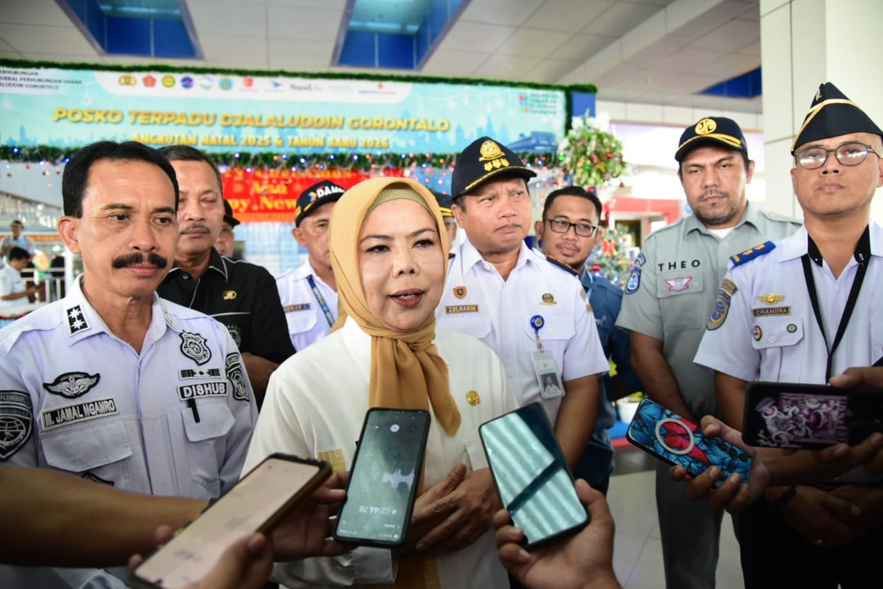 Kabupaten Gorontalo, Kominfotik – Pemerintah Provinsi Gorontalo memberikan keringanan biaya perjalanan bagi masyarakat yang akan melakukan mudik Natal dan Tahun Baru (Nataru). Hal tersebut disampaikan Wakil Gubernur Gorontalo Idah Syahidah Rusli Habibie usai memimpin apel gelar pasukan sekaligus pembukaan Posko Terpadu angkutan udara periode Natal 2025 dan Tahun Baru 2026 yang dirangkaikan dengan latihan darurat keamanan penerbangan di Bandara Djalaludin Gorontalo, Kamis (18/12/2025).