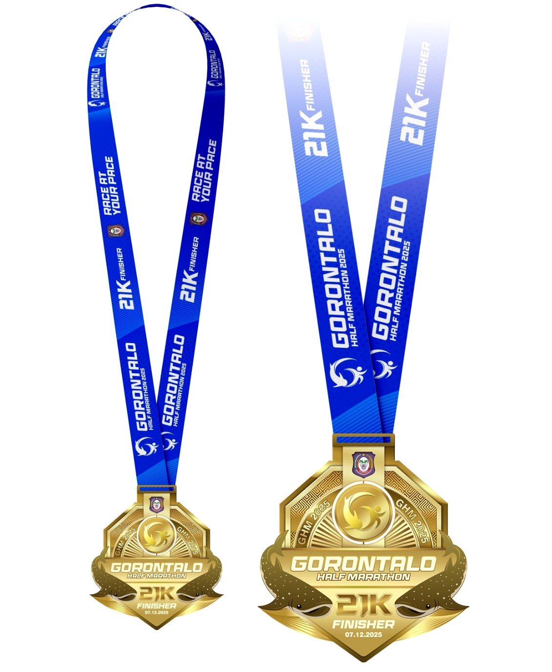Medali GHM 2025 sendiri dirancang dengan kualitas premium berstandar internasional menggunakan Zinc Alloy 200 gram, finishing emas elegan, desain bermotif lokal, serta siluet hiu paus sebagai ikon wisata Gorontalo. Panitia memastikan medali ini menjadi simbol kebanggaan bagi seluruh finisher.