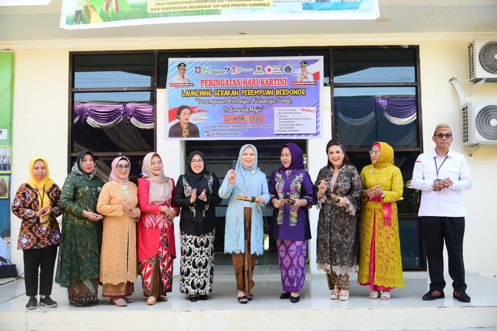 Kota Gorontalo, Kominfotik – Gerakan Perempuan Berdonor warnai peringatan Hari Kartini ke-62 yang digelar di Halaman Kantor Dinas Pemberdayaan, Perlindungan Perempuan dan Anak Serta Pemberdayaan Masyarakat Desa (PPPA-Pemdes), Selasa (21/4/2026). Peringatan berlangsung sederhana yang dihadiri oleh Wakil Gubernur Gorontalo Idah Syahidah Rusli Habibie, para pengurus organisasi perempuan serta para pengemudi ojek online (ojol) perempuan.