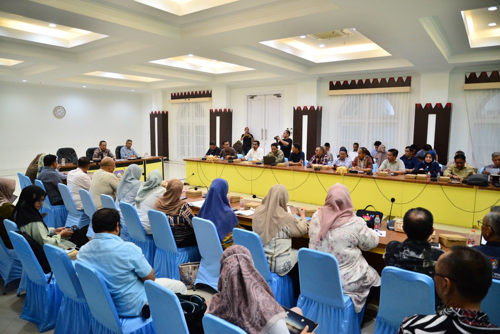 Rapat tindak lanjut rekomendasi hasil pemeriksaan Badan Pemeriksa Keuangan bersama inspektur dan seluruh sekretaris OPD/biro di Aula Rujab Gubernur, Rabu (1/4/2025). (Foto : Mila)