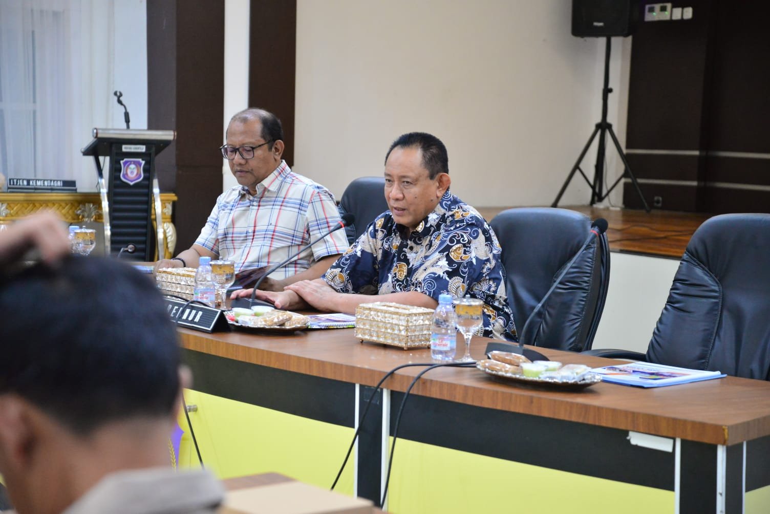 Gubernur Gusnar Ismail bersama Sekdaprov Gorontalo Sofian Ibrahim saat memimpin Rapat bersama kelompok kerja (Pokja) optimalisasi dan operasionalisasi kelembagaan adat di Aula Rujab Gubernur, Jumat (3/10/2025). Foto – Ryan Diskominfotik.
