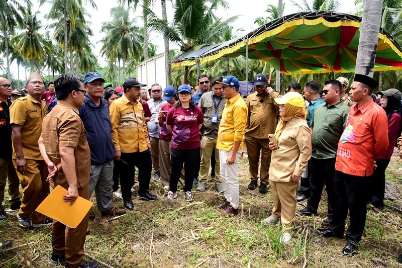 Wamen Stella Christie bersama rombongan selanjutnya meninjau lahan yang berlokasi di Desa Ayuhulalo masih di Kecamatan Tilamuta. Lahan ketiga yang ditinjau berada di wilayah Kecamatan Wonosari.
