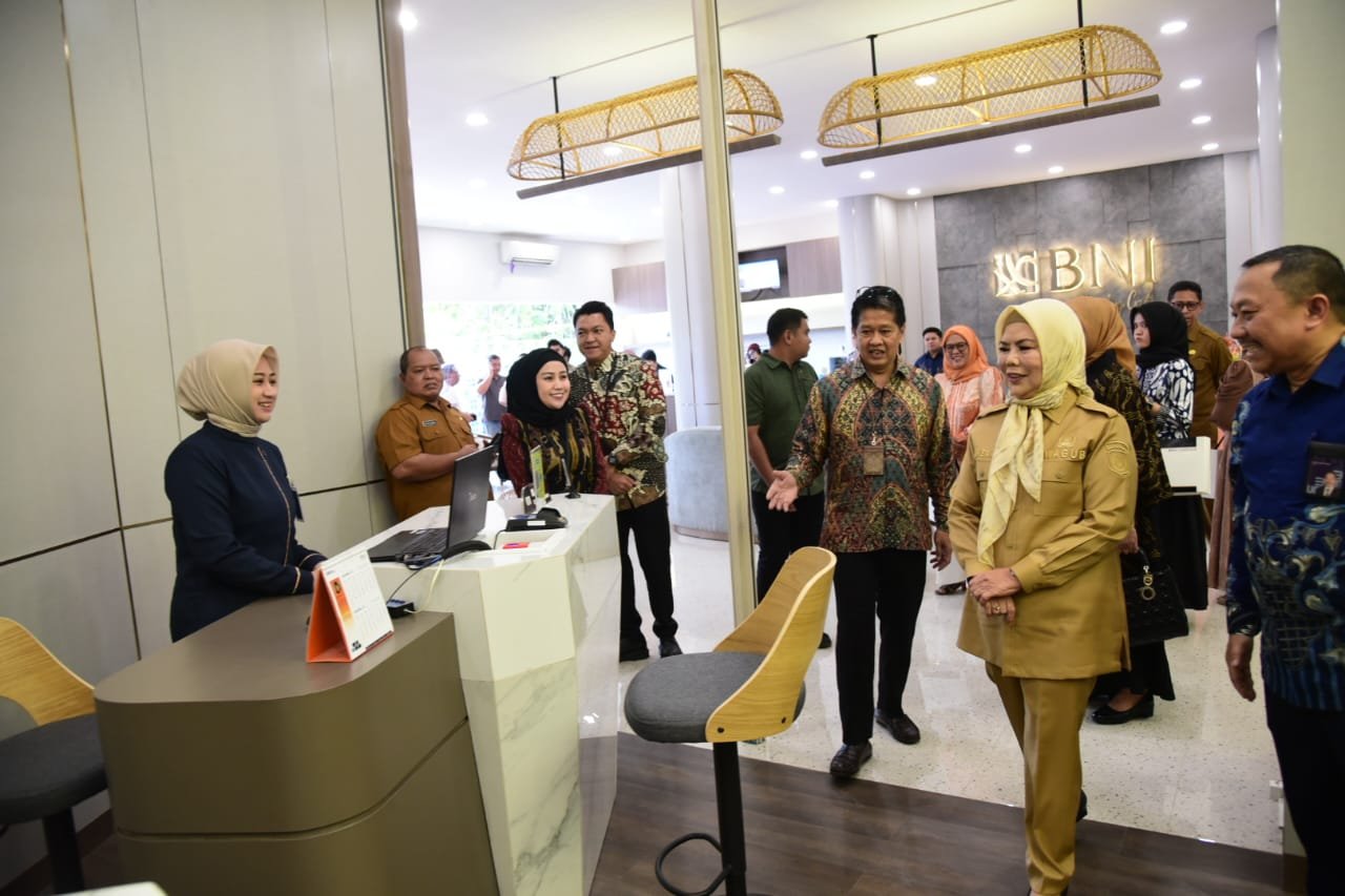 Wakil Gubernur Gorontalo Idah Syahidah Rusli Habibie saat meninjau gedung baru BNI Kantor Cabang Pembantu (KCP) Sudirman berkonsep Banking Cafe yang berlokasi di Jalan Pangeran Hidayat, Wumialo, Kota Gorontalo, Senin (15/12/2025). Foto – Fadly Diskominfotik.