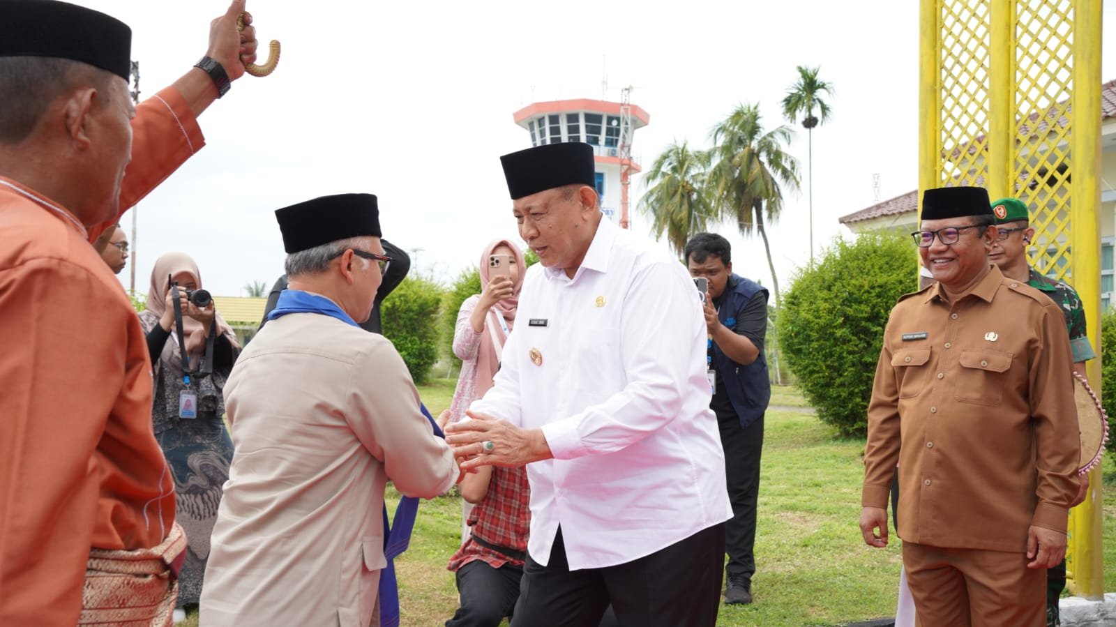 KABUPATEN GORONTALO, Kominfotik – Wakil Menteri Pendidikan Dasar dan Menengah (Wamendikdasmen) Atip Latipulhayat disambut adat Mopotilolo saat tiba di Bandara Djalaluddin Tantu, Kabupaten Gorontalo, Selasa (28/4/2026). Kedatangan Wamendikdasmen disambut oleh Gubernur Gorontalo Gusnar Ismail bersama jajaran Forkopimda.