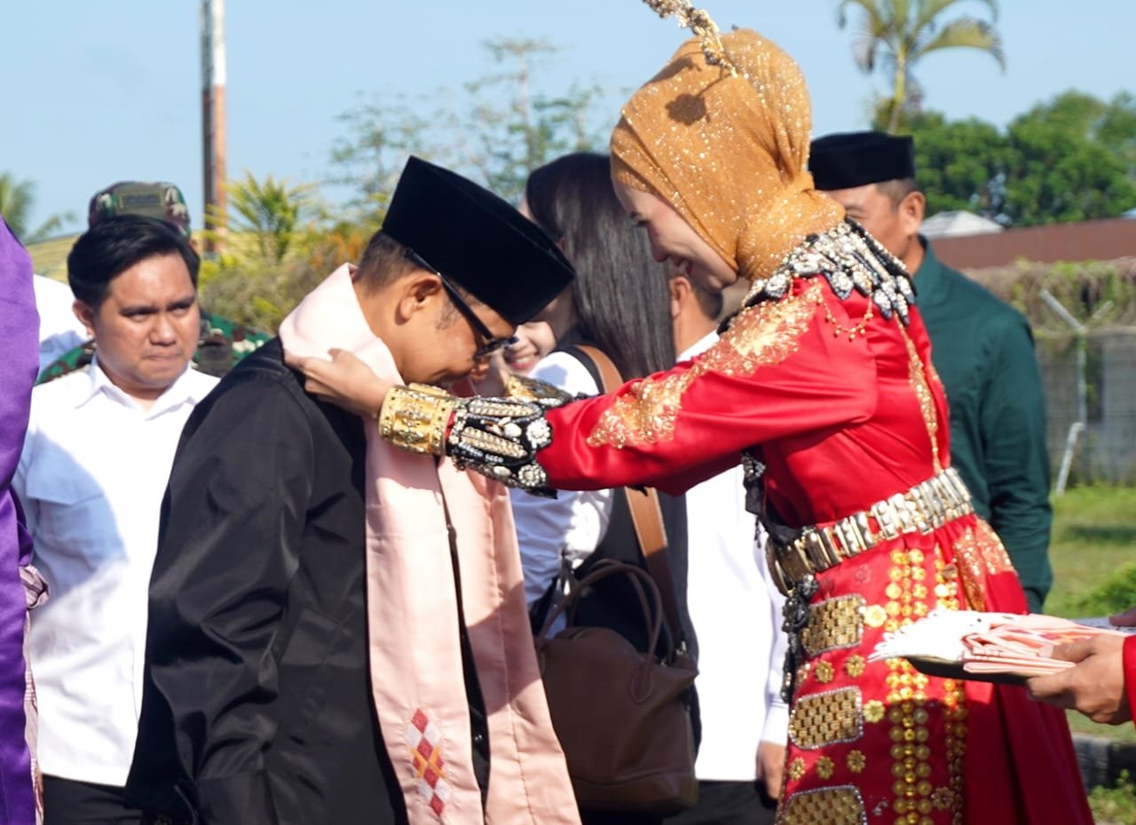 The welcoming of Coordinating Minister for Community Empowerment Muhaimin Iskandar at Djalaludin Airport, Gorontalo Regency, Wednesday (8/10/2025). (Photo: Valen)